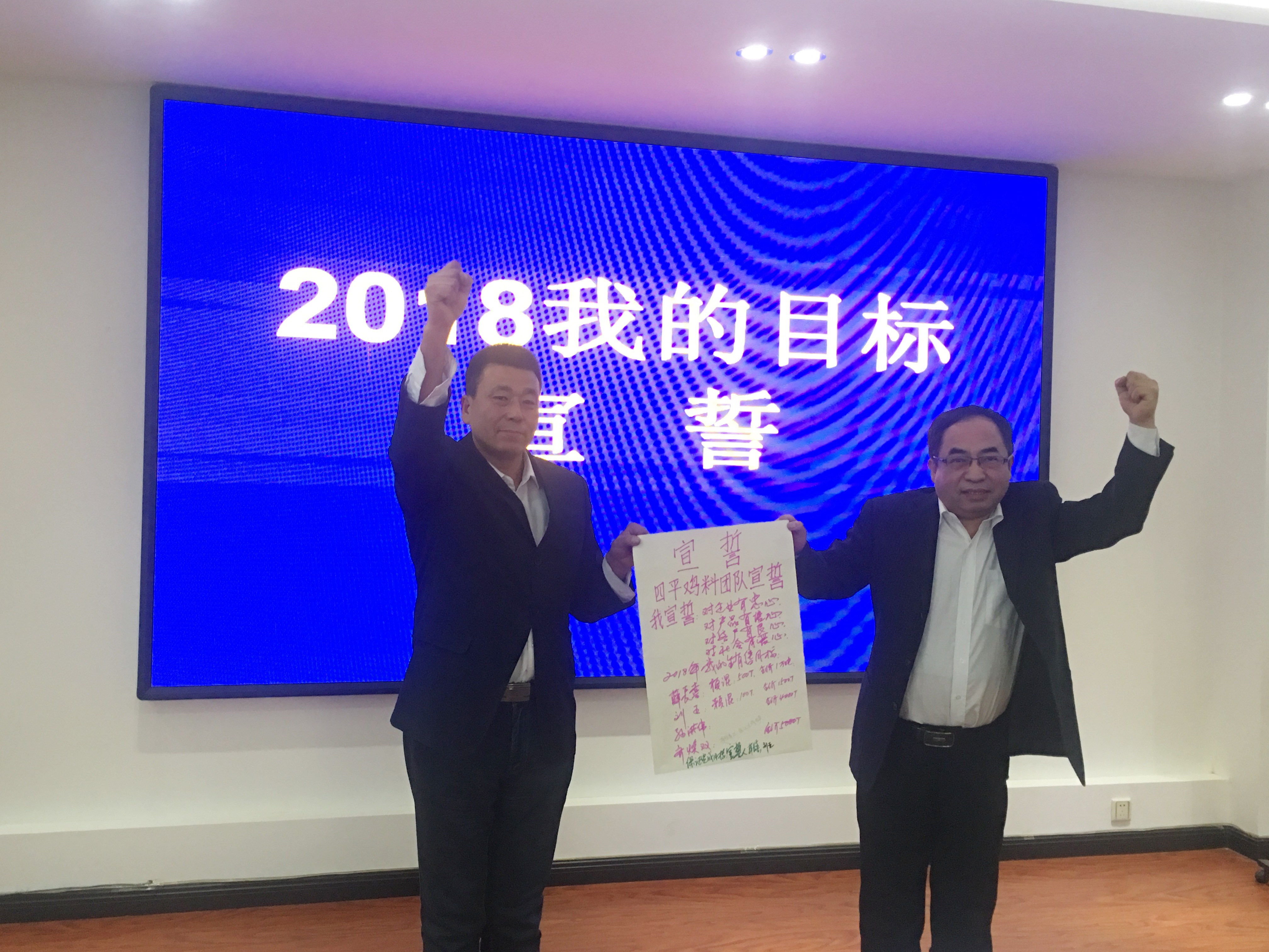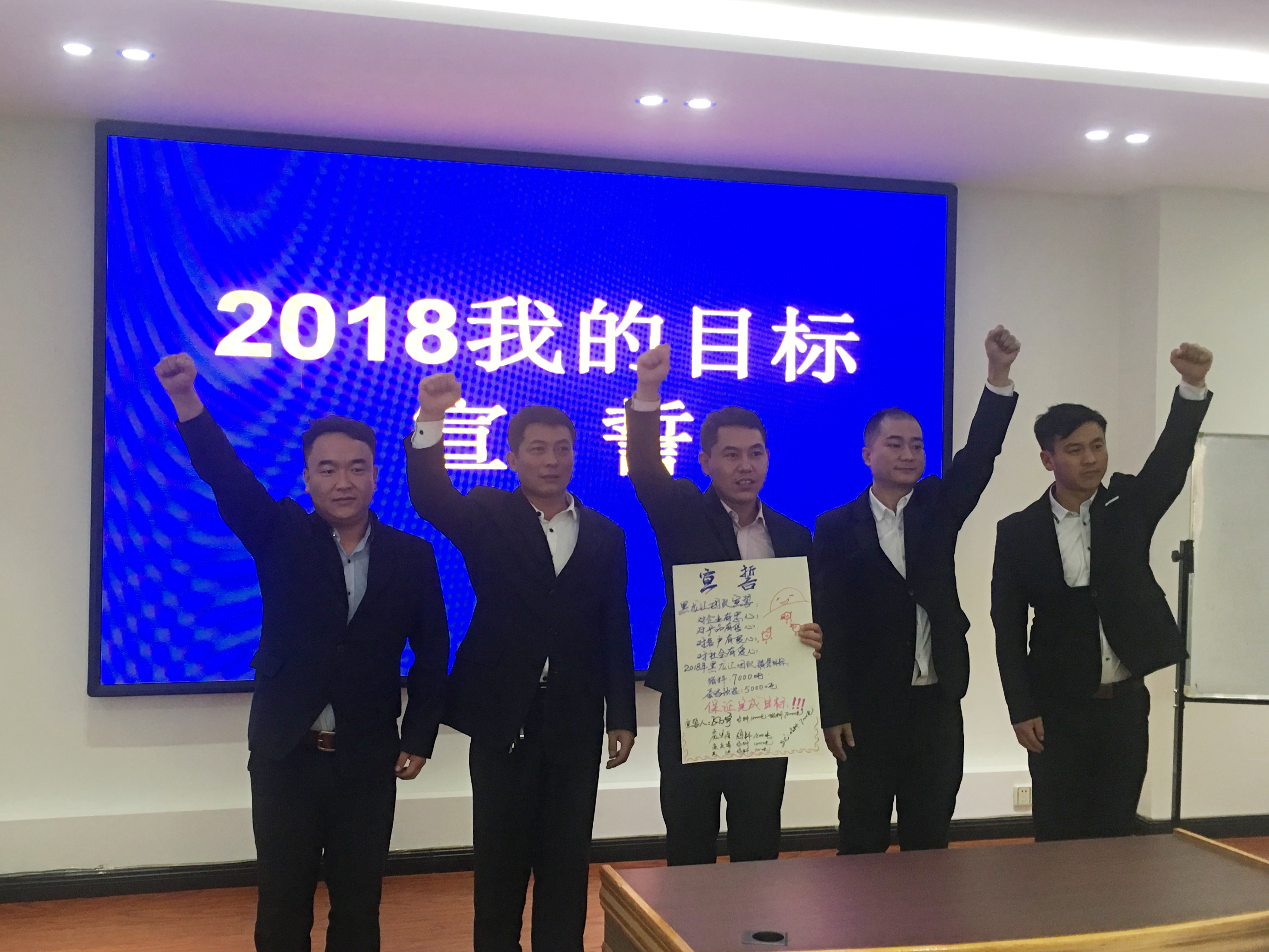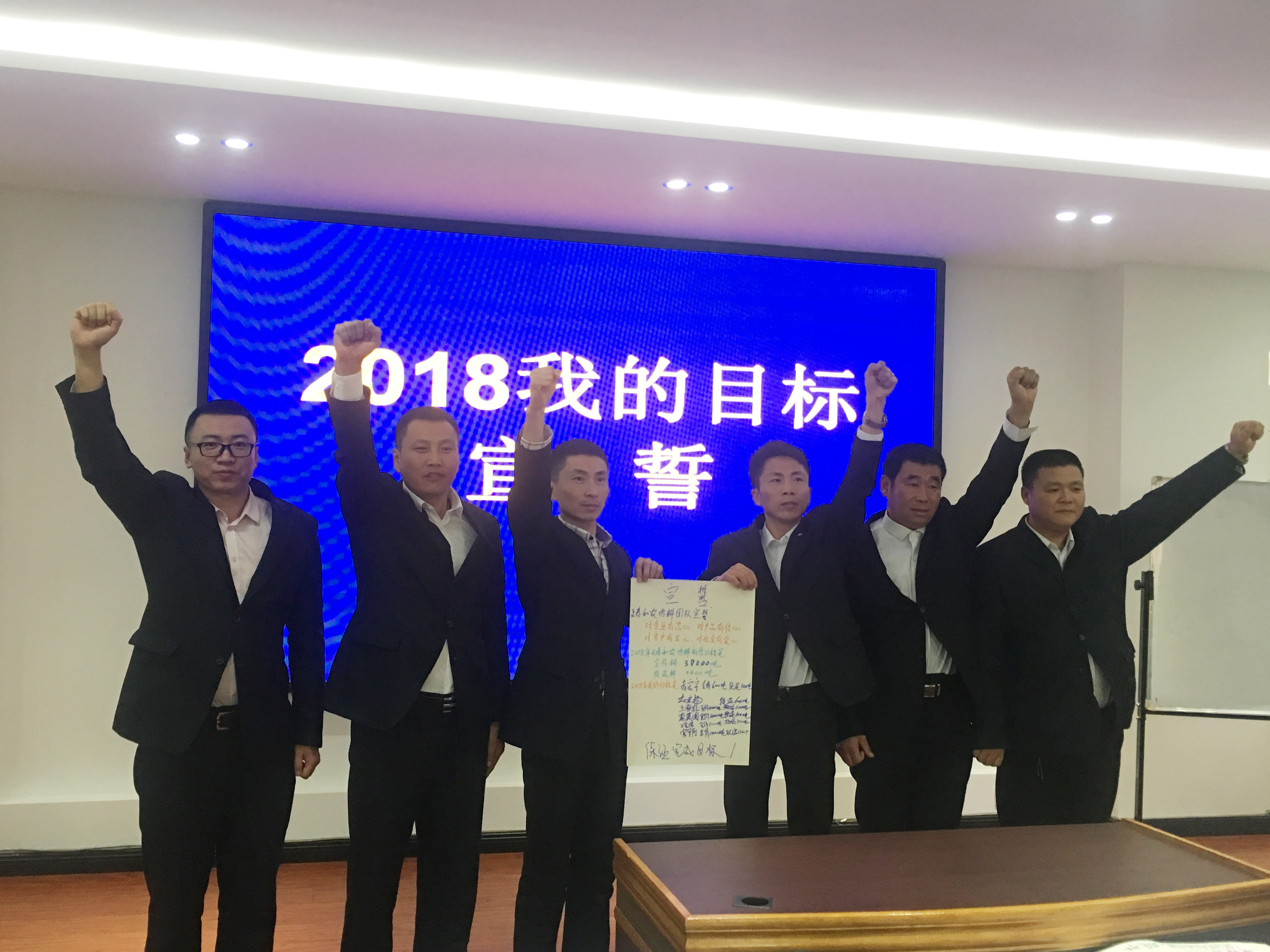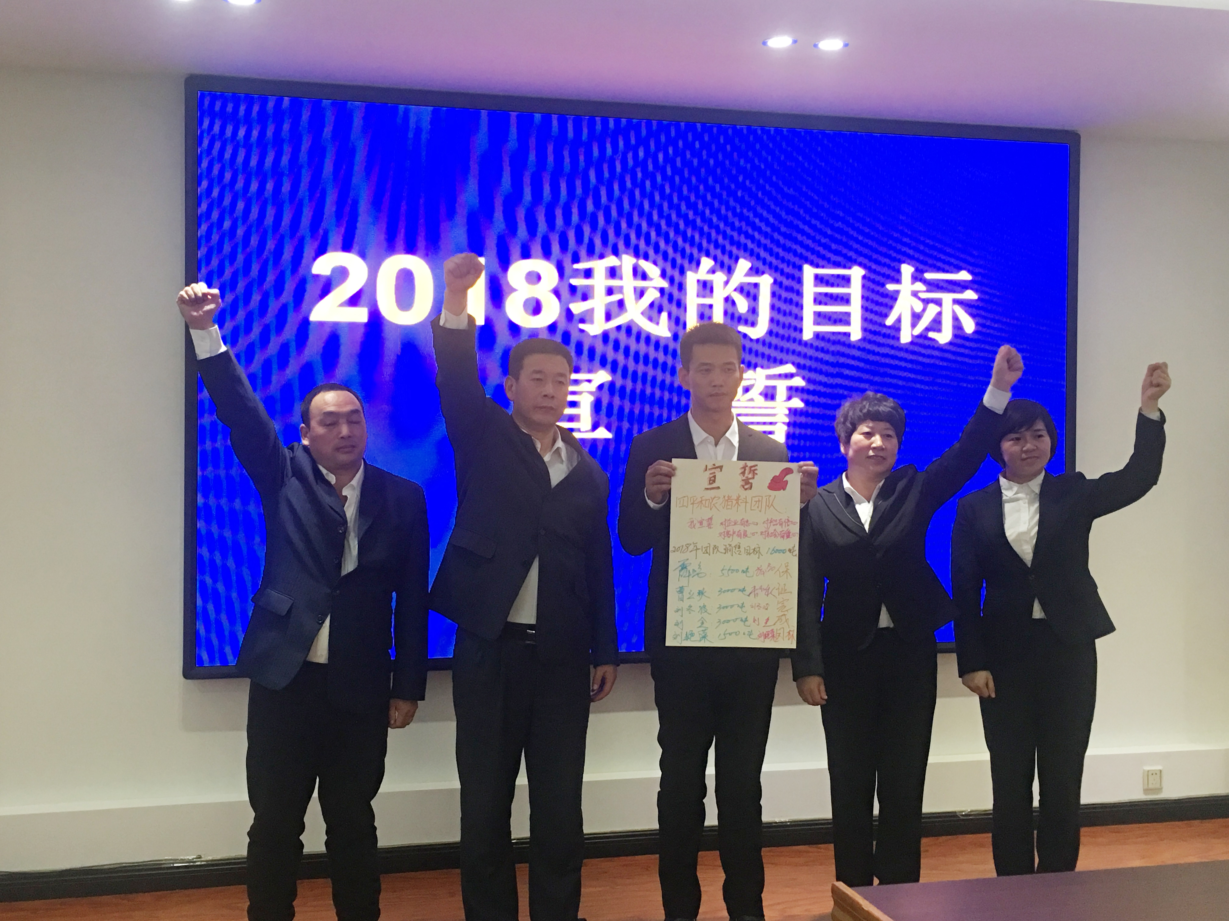 2018年1月3日,和農(nóng)牧業(yè)集團(tuán)2018年營銷目標(biāo)宣誓在公司會議室召開?!皩ζ髽I(yè)有忠心,對產(chǎn)品有信心,對用戶有良心,對社會有愛心。我宣誓在2018年做到……”等鏗鏘有力的宣誓聲響徹整個會議現(xiàn)場。